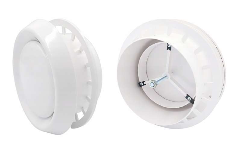 • Wysoka estetyka i jakość: Wykonane z wysokiej klasy tworzywa ABS. Minimalistyczny design sprawia, że anemostat staje się dyskretnym elementem dekoracyjnym sufitu lub ściany.