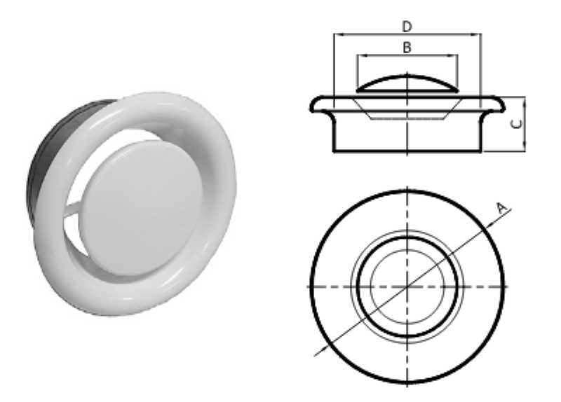 ANEMOSTAT WYWIEWNY FI100mm Z RAMKĄ MONTAŻOWĄ METALOWY BIAŁY DARCO