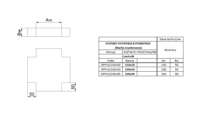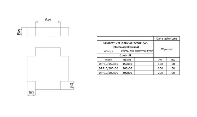 CZWÓRNIK POZIOMY PŁASKI DO SYSTEMU 200x50mm BLACHA OCYNKOWANA PRODMAX