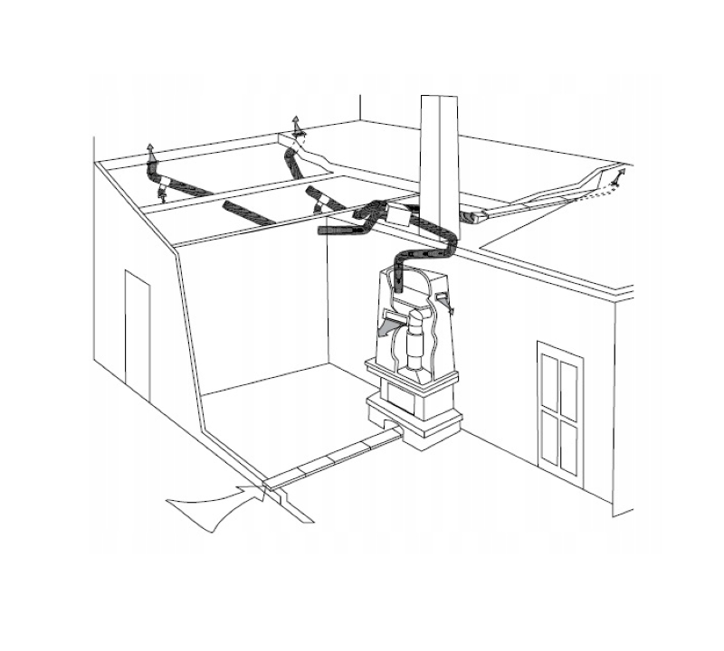 • systemy doprowadzające powietrze do spalania w kominkach oraz jako systemy rozprowadzające ciepłe powietrze z kominków w pomieszczeniach mieszkalnych.