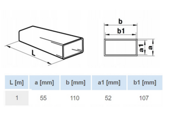 KANAŁ WENTYLACYJNY PŁASKI 110x55mm DŁUGOŚĆ 100cm PCV WENTYLACJA VENTS 010