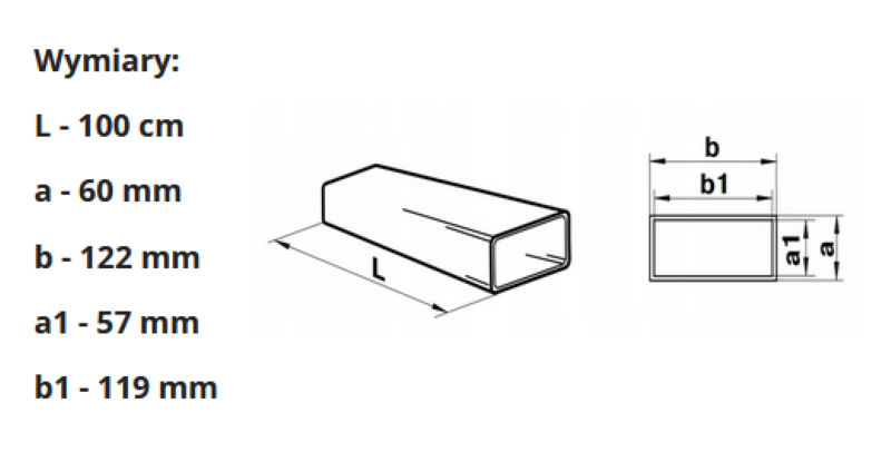KANAŁ WENTYLACYJNY PŁASKI 120x60mm DŁUGOŚĆ 100cm PCV WENTYLACJA VENTS 4010
