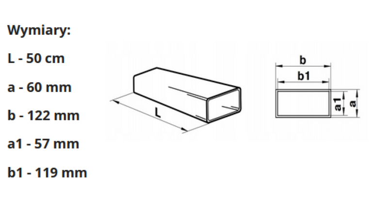 KANAŁ WENTYLACYJNY PŁASKI 120x60mm DŁUGOŚĆ 50cm PCV WENTYLACJA VENTS 4005