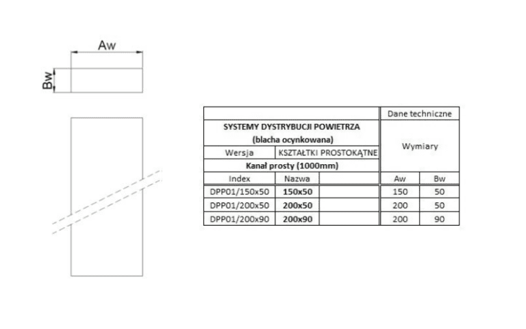 KANAŁ WENTYLACYJNY PŁASKI 200x90mm DŁUGOŚĆ 100cm BLACHA OCYNKOWANA