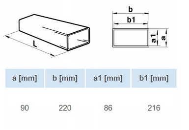 szt.KANAŁ WENTYLACYJNY PŁASKI 220x90mm DŁUGOŚĆ 100cm PCV WENTYLACJA VENTS 910