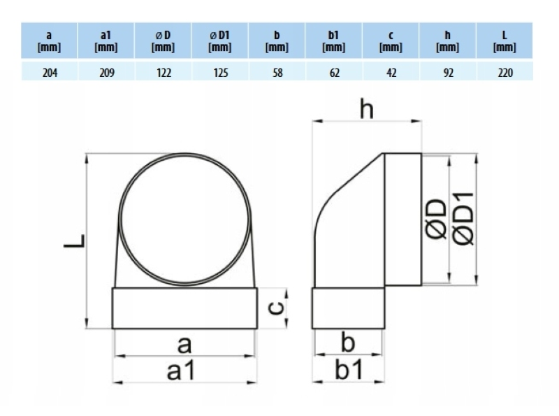 Kolano płaskie 204x60 do kanału fi125 mm jest jednym z elementów modułowego systemu kanałów okrągłych wykonanego z PCV, charakteryzujących się niskimi oporami przepływu powietrza. Lekka konstrukcja, estetyczny wygląd i łatwość montażu - pozwalająca na zbudowanie systemu bez użycia specjalistycznych narzędzi, to niewątpliwe zalety tego produktu.