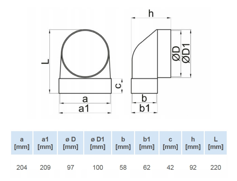 Kolano płaskie 204x60 do kanału fi100 mm jest jednym z elementów modułowego systemu kanałów okrągłych wykonanego z PCV, charakteryzujących się niskimi oporami przepływu powietrza. Lekka konstrukcja, estetyczny wygląd i łatwość montażu - pozwalająca na zbudowanie systemu bez użycia specjalistycznych narzędzi, to niewątpliwe zalety tego produktu.