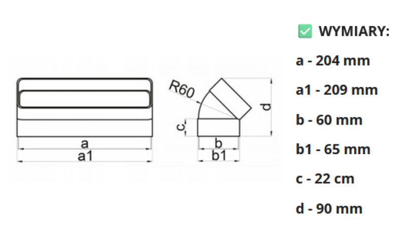 KOLANO PIONOWE 45 STOPNI DO KANAŁU PŁASKIEGO 204x60mm PCV VENTS 575