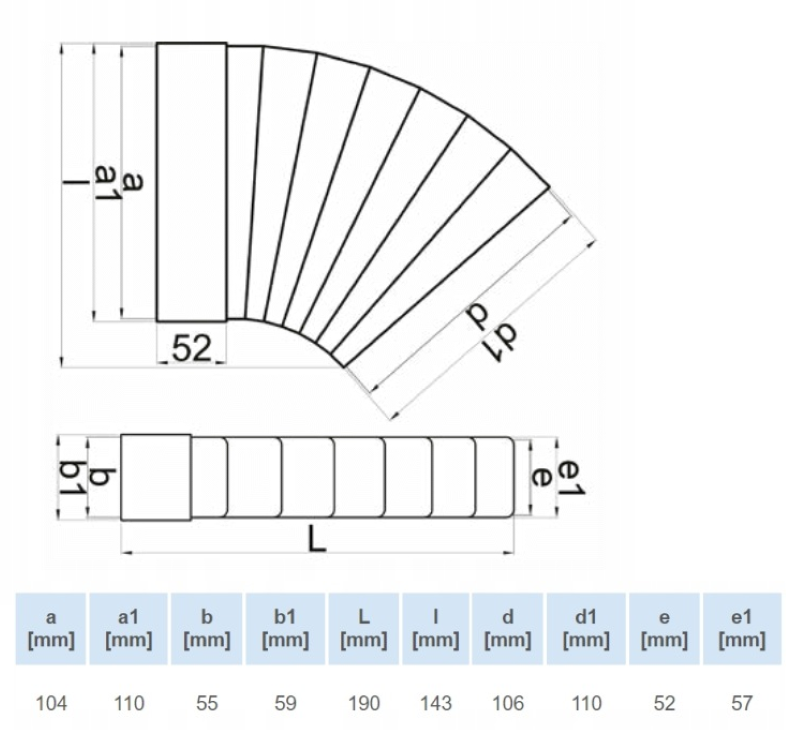 KOLANO WENTYLACYJNE PŁASKIE STAŁE ŁĄCZĄCE KANAŁ 220x90mm Z FI150 VENTS 961-1
