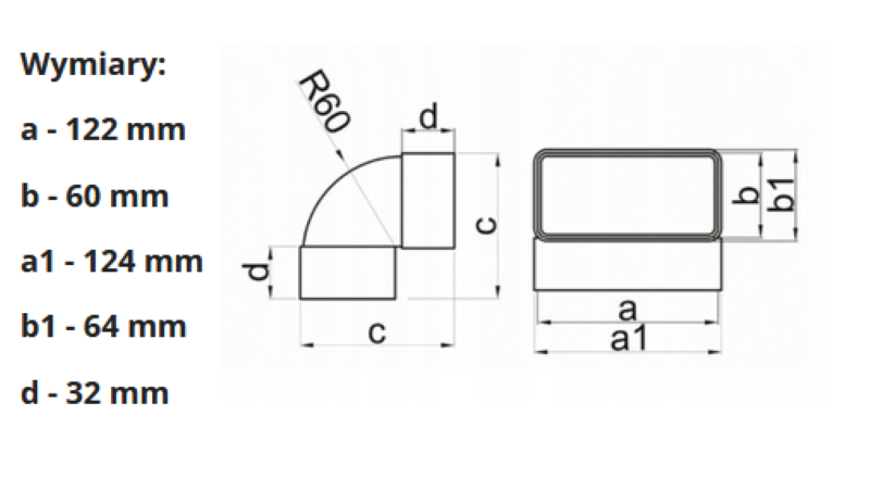 KOLANO WENTYLACYJNE PIONOWE 90 ST. DO KANAŁU 120x60mm VENTS 460