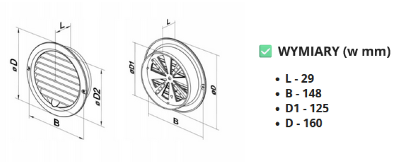 szt.KRATKA WENTYLACYJNA DO KANAŁU OKRĄGŁEGO FI125mm Z REGULOWANĄ ŻALUZJĄ BIAŁA