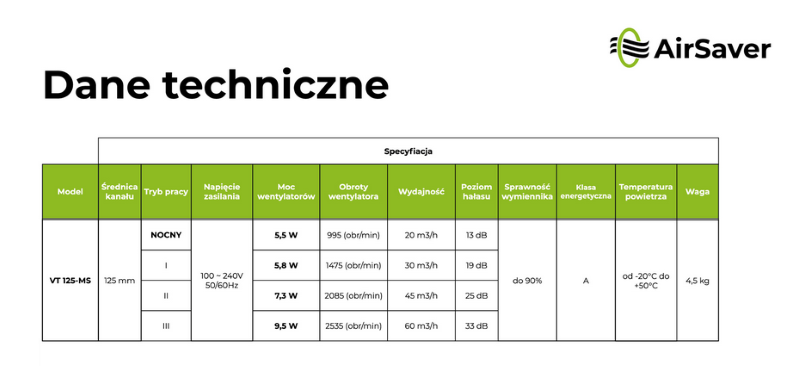 ✔️ Tryb cyklu - nawiewnik działa w trybie odwracalnym z odzyskiem ciepła i wilgoci.
