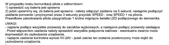 Zestaw regulator + pilot sparowany fabrycznie. Kanał radiowy 2,4GHz