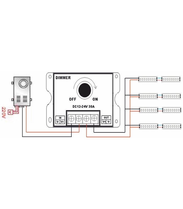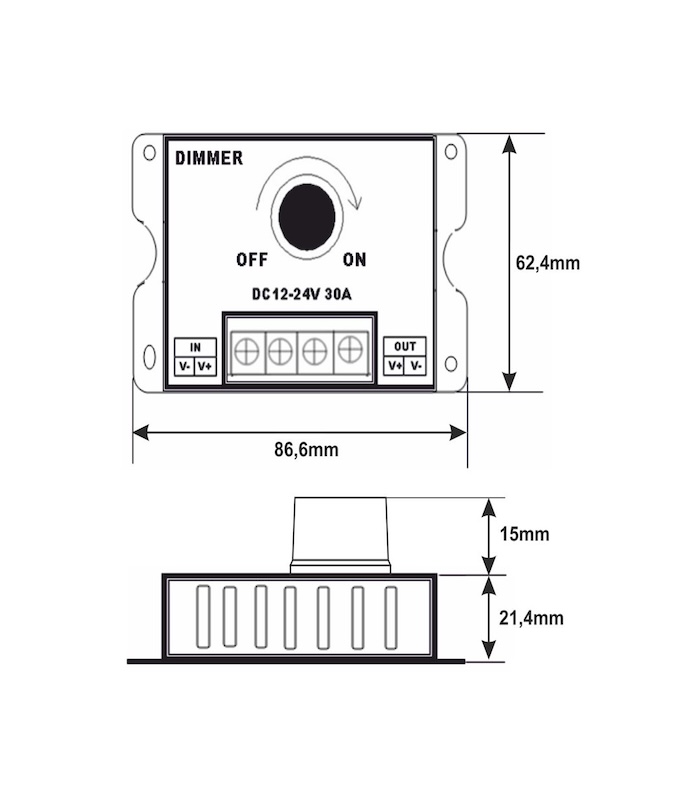 Funkcjonalny ściemniacz do taśm jednokolorowych MONO. Ściemniacz kanału sygnałowego, który może regulować jasność od 0-100%. Jego tryb sterowania to sterowanie za pomocą pokrętła, można dostosować światło do odpowiedniej jasności oświetlenia zgodnie z rzeczywistą potrzebą. Urządzenie jest regulowane w zakresie 0-100% jasności dzięki czemu możliwe jest całkowite wyłączenie taśmy led. Łatwy w instalacji i prosty w obsłudze.