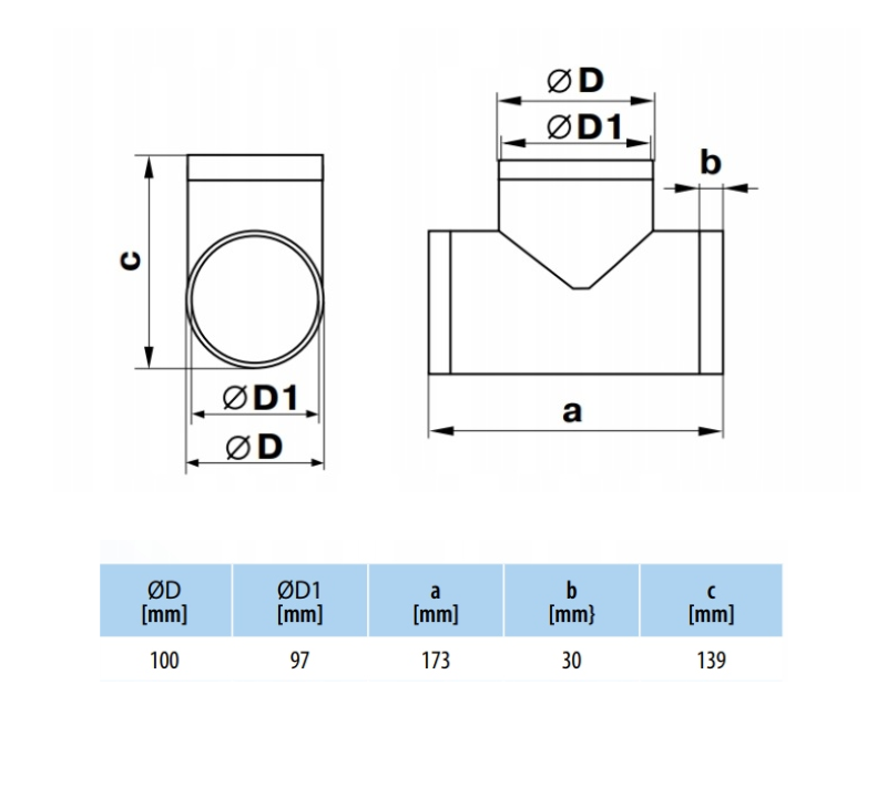 TRÓJNIK OKRĄGŁY DO KANAŁÓW WENTYLACYJNYCH OKRĄGŁYCH FI100 mm PCV VENTS 492