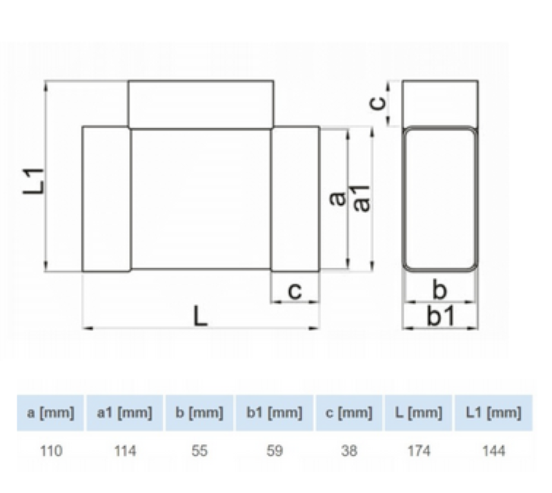 TRÓJNIK POZIOMY PŁASKI DO KANAŁU PŁASKIEGO 110×55 mm PCV VENTS 082