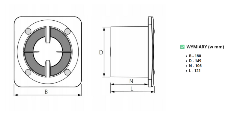 • Wentylator osiowy, plastikowy, domowy, preferowany montaż ścienny lub opcjonalnie sufitowy.