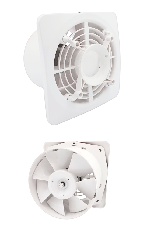 Wentylator wyposażono w łożyska kulkowe charakteryzujące się długą żywotnością, wyższą wydajnością i możliwością montażu w ścianie lub suficie. Obudowa i wirnik wykonane są z wysokiej jakości tworzywa - ABS, odpornego na uszkodzenia mechaniczne oraz działanie promieni UV.