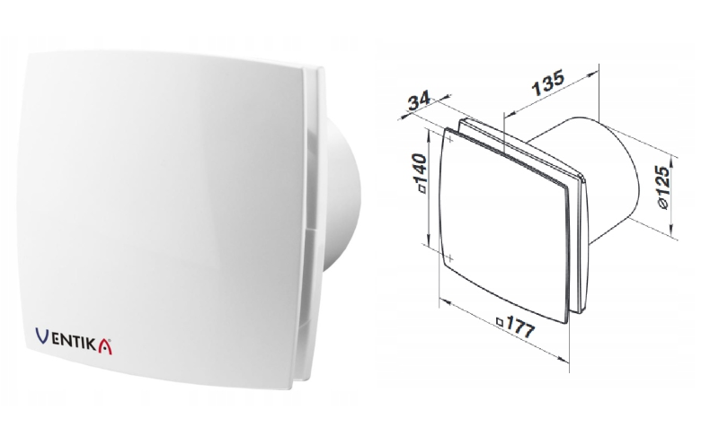 WENTYLATOR ŁAZIENKOWY FI125mm WYDAJNY 167m3/h VENTIKA MODERN