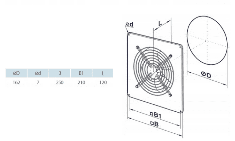 W wentylatorach zastosowane są jednofazowe silniki z zewnętrznym wirnikiem, z wbudowanym zabezpieczeniem termicznym z automatycznym restartem. Stopień ochrony silnika: IP 24.