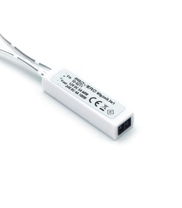 WŁĄCZNIK UNIWERSALNY BIAŁY 3W1 12V 60W ZBIŻENIOWY, DO SZAF, ŚCIEMNIACZ