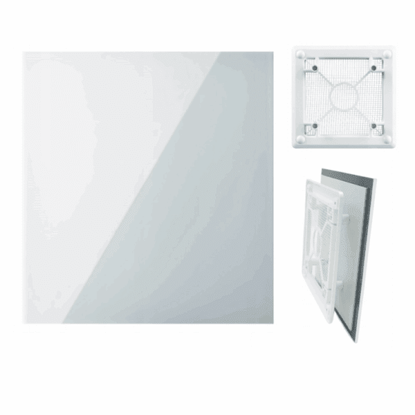 KRATKA WENTYLACYJNA PANEL SZKŁO BIAŁY POŁYSK 18x18cm Z SIATKĄ PRZECIW OWADOM