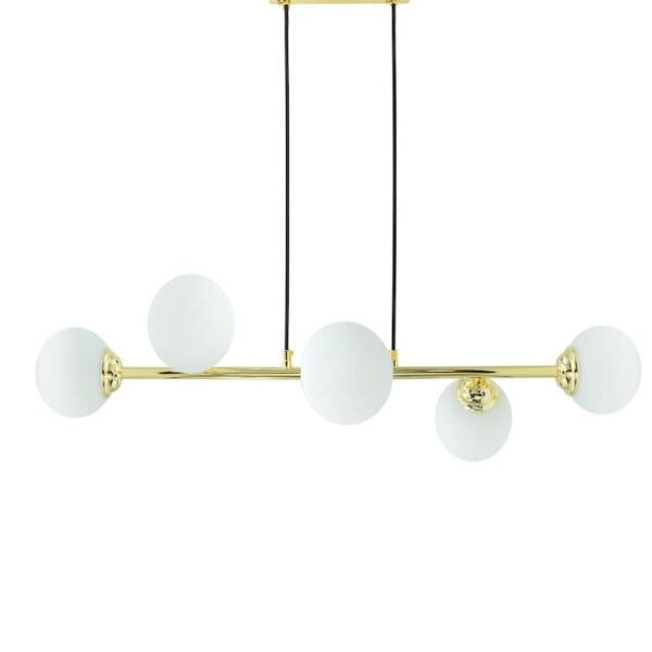 LAMPA WISZĄCA PLAFON ZŁOTY BIAŁE MLECZNE SZKLANE KULE NOWOCZESNY 6xE27 90CM