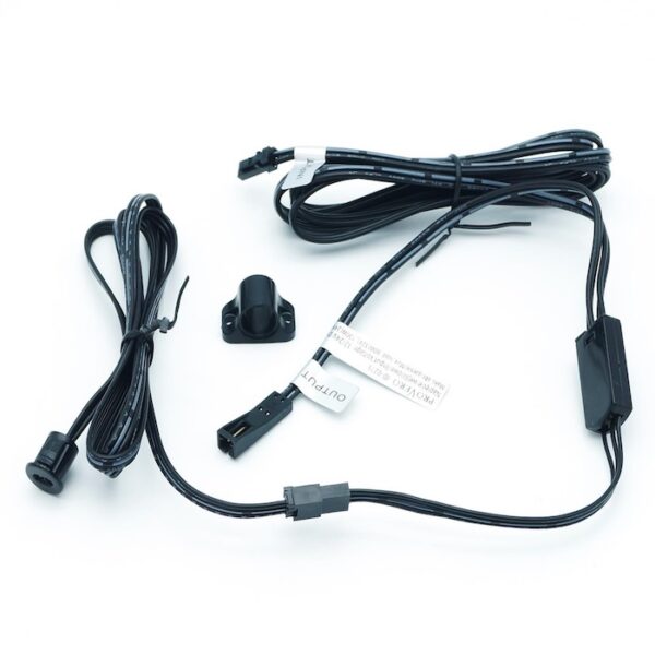 Urządzenie ma formę płytki drukowanej (PCB) o wymiarach 10x80mm umożliwiających umieszczenie w profilu aluminiowym między taśmą LED a zasilaczem. Wlutowane sprężynki o wysokości kilku cm powinna być osłonięta kloszem profilu i stanowi punkt maksymalnej czułości układu. Płytka ma pole stykowe umożliwiające przylutowanie przewodów połączeniowych. |